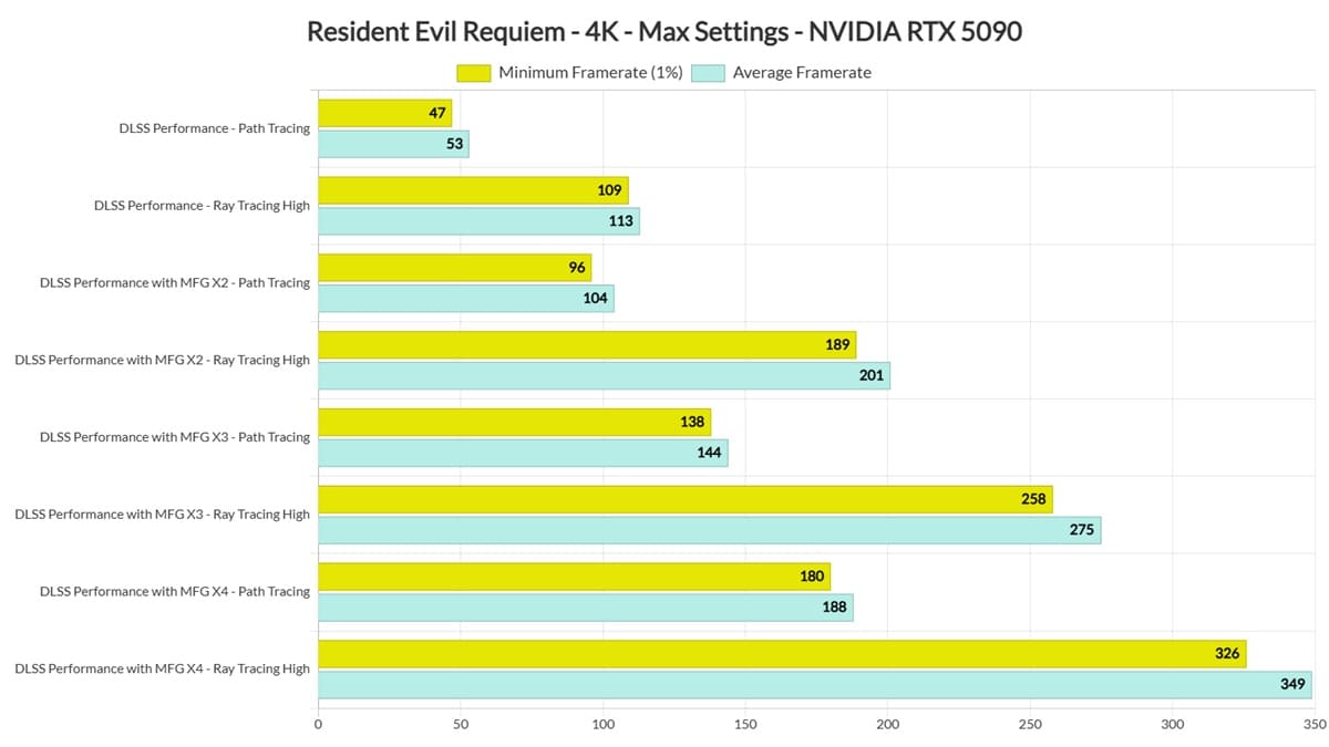 Resident Evil Requiem alcanza 180 FPS con DLSS 4.5 y Path Tracing según benchmarks de DSOGaming