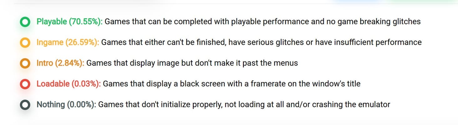 El dato del 70% de compatibilidad representa únicamente la clasificación oficial del proyecto, pero la experiencia real puede ser aún mejor. A medida que aumenta la potencia del sistema, se amplía la brecha entre la evaluación técnica estándar y el uso práctico, ya que la emulación exige un alto consumo de recursos y escala de forma notable con CPUs y GPUs más avanzadas.