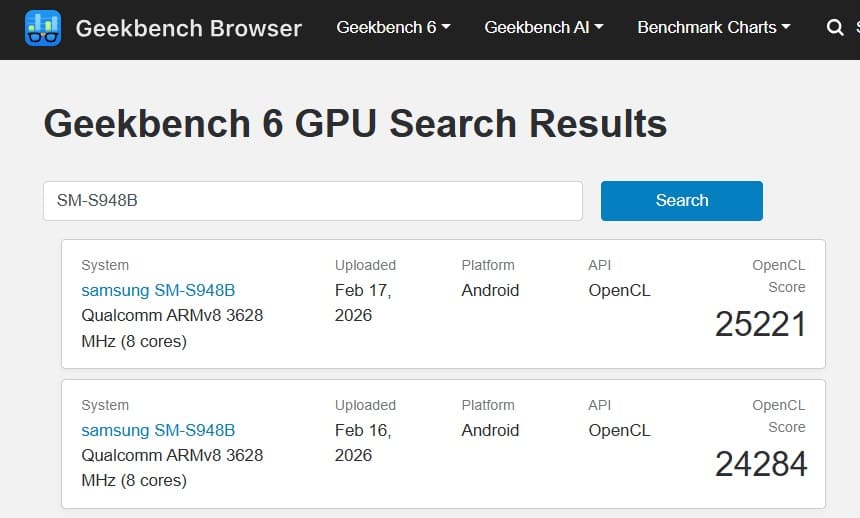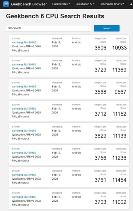 Los primeros resultados en Geekbench 6.5 muestran que el Galaxy S26 Ultra obtiene puntuaciones multihilo alrededor de un 7% superiores frente a dispositivos como el OnePlus 15, que también emplean el Snapdragon 8 Elite Gen 5.