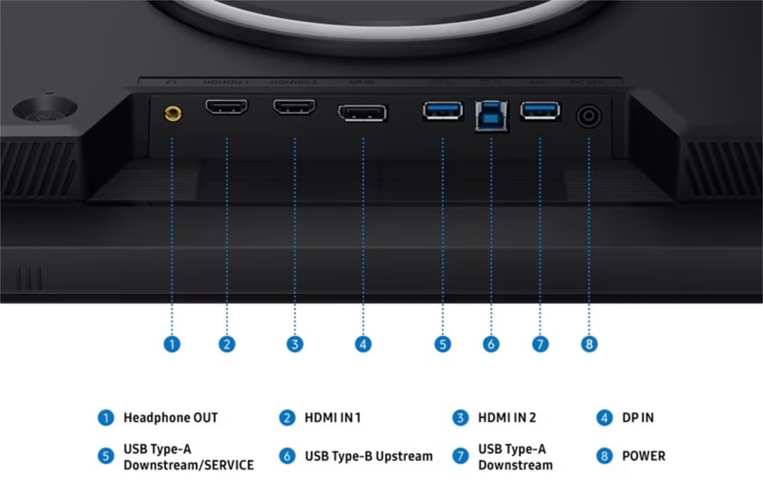 En conectividad, Samsung opta por una configuración sólida, aunque con una ausencia llamativa. El monitor incluye: