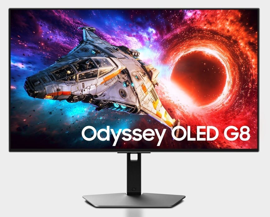 - Odyssey OLED G8 32″ (G80SH): panel QD-OLED 4K con 240 Hz, orientado a usuarios que buscan alto contraste, negros profundos y respuesta rápida. Ofrece 300 nits de brillo, certificación VESA DisplayHDR True Black 500 y conectividad DisplayPort 2.1 (UHBR20) con hasta 80 Gbps de ancho de banda.