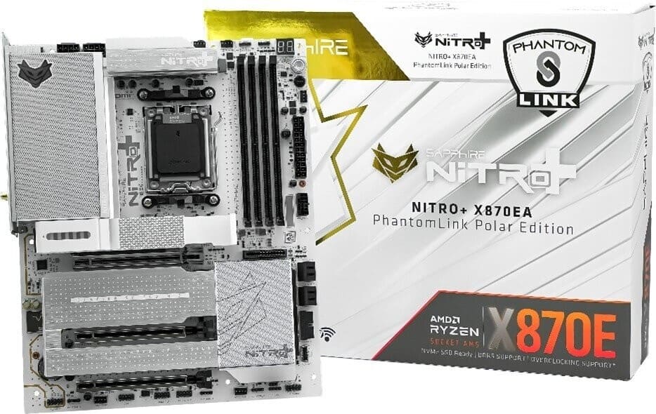 Junto a la GPU, Sapphire ha lanzado la NITRO+ X870EA PhantomLink, una placa base Socket AM5 diseñada específicamente para soportar esta tecnología. El modelo estará disponible en dos combinaciones de color, blanco+plata y negro+plata, manteniendo la identidad visual de la serie.