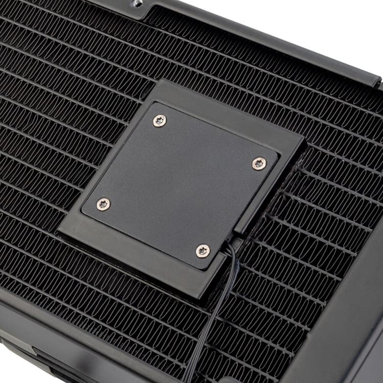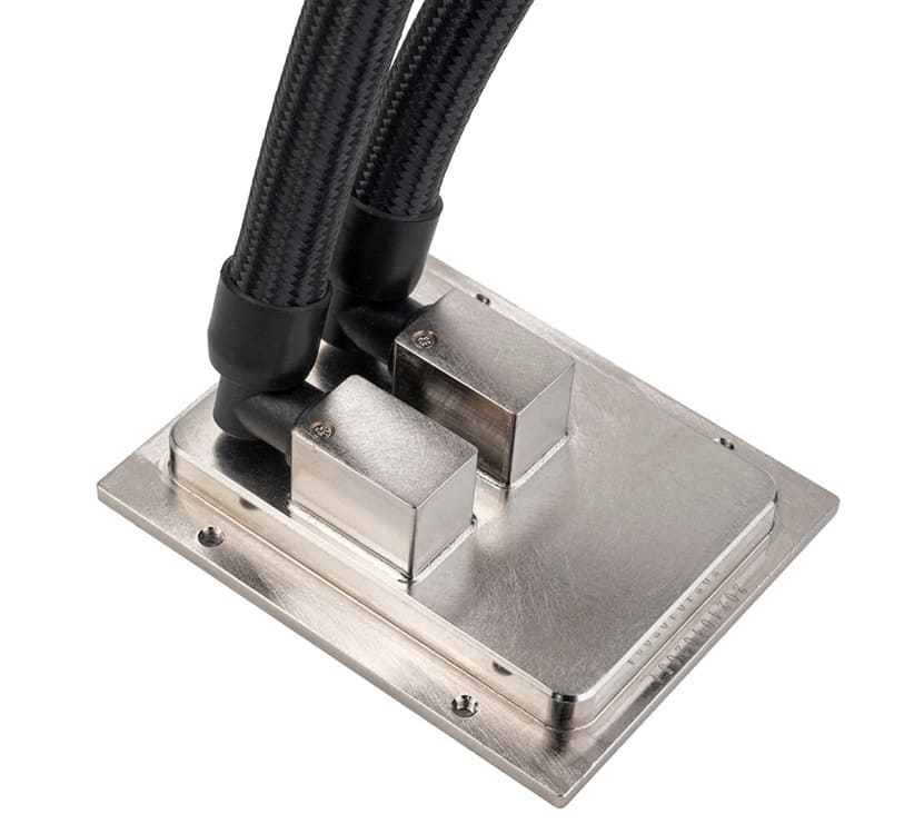 El componente central es un radiador de 360 mm x 120 mm y 38 mm de grosor, construido en aluminio y con un diseño que integra dos bombas independientes en el propio radiador. Una de las bombas se encarga de extraer el líquido refrigerante del bloque, mientras que la otra lo impulsa de regreso tras pasar por el radiador, optimizando la circulación y la disipación térmica.