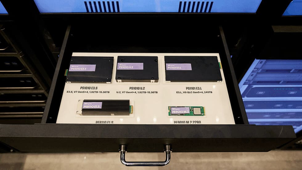 La compañía también presentó un sistema de inferencia LLM distribuido basado en memoria agrupada CXL, demostrando mejoras en la comunicación entre GPU y servidores frente a métodos de red tradicionales. En paralelo, se exhibieron eSSD de nueva generación como los PS1010 E3.S y PEB110 E1.S, junto con sistemas de detección de obleas mediante visión AI, aplicando modelos YOLOv8-OBB dentro de cámaras de proceso semiconductor.