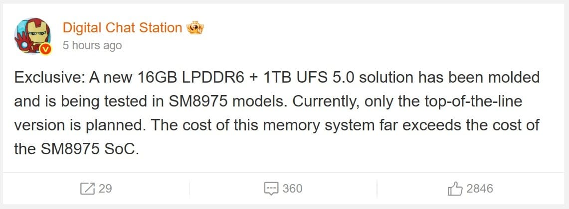 Según información compartida por el conocido filtrador Digital Chat Station, algunos fabricantes ya estarían probando dispositivos que combinan Snapdragon 8 Elite Gen 6 Pro, LPDDR6 y UFS 5.0, aunque la adopción de este conjunto de hardware podría incrementar notablemente el coste de fabricación.