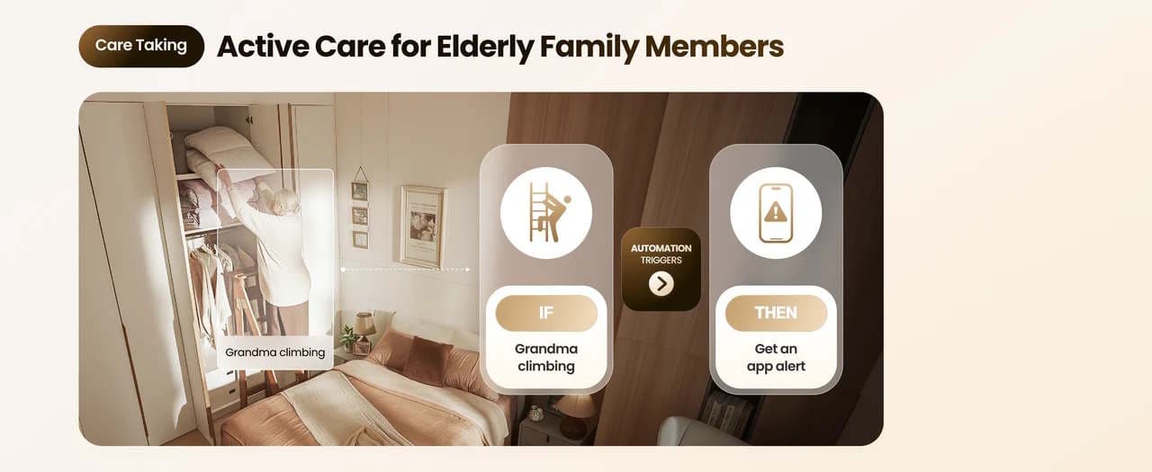 El SwitchBot AI Hub incorpora funciones de reconocimiento facial, detección de mascotas y identificación de objetos en flujos de vídeo en tiempo real. Estas capacidades permiten crear automatizaciones locales que actúan en función de lo que detecta la cámara, como activar una luz cuando una persona se tumba en el sofá o ejecutar rutinas específicas según comportamientos reconocidos.