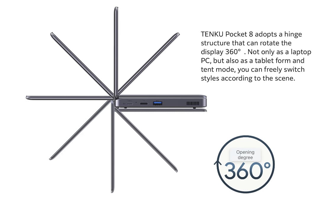 Tenku Pocket 8: portátil ultracompacto de 8 pulgadas con Intel Core i3 N305 y diseño convertible de 360°
