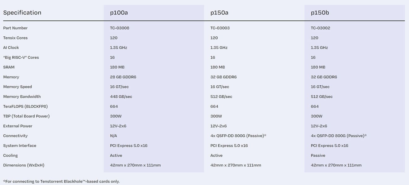 En la documentación original de los modelos con 140 núcleos Tensix, el rendimiento en BLOCKFP8 (precisión de 8 bits) se situaba en 774 TeraFLOPS. Tras el ajuste a 120 núcleos, esa cifra se reduce hasta 664 TeraFLOPS, una caída cercana al 14%, en línea directa con la reducción de recursos computacionales.