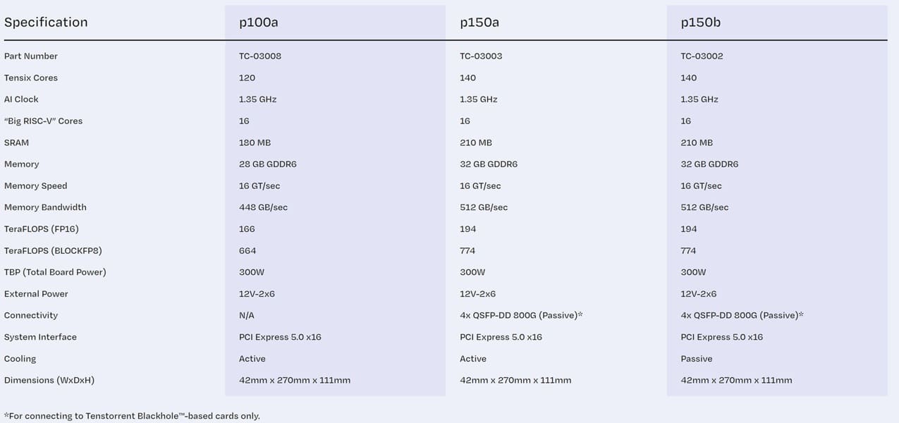 Conviene recordar que los Blackhole P150 están diseñados como aceleradores para estaciones de trabajo, integran 32 GB de memoria GDDR6 y operan con un consumo máximo de 300W, en un formato con refrigeración activa. En el caso del P150a, el diseño incluye además cuatro puertos QSFP-DD 800G pasivos, orientados a configuraciones de alto ancho de banda.
