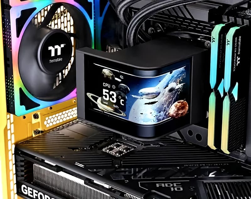 La firma Thermaltake ha anunciado oficialmente el MAGCurve 360 Ultra ARGB, un nuevo sistema de refrigeración líquida AIO de 360 mm que apuesta de forma clara por el diseño visual sin renunciar a especificaciones de alto rendimiento térmico. El elemento más llamativo es su bloque de agua curvo, que integra una pantalla AMOLED de 6,67 pulgadas con resolución de 2240 × 1080 píxeles, una cifra muy superior a la habitual en este tipo de productos.