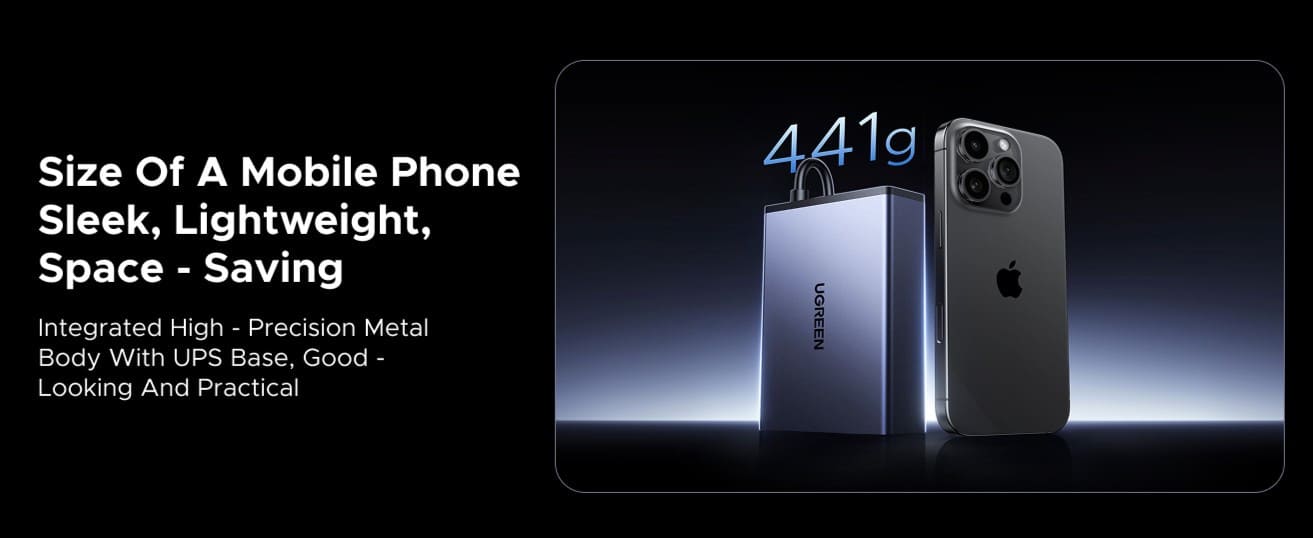 El Ugreen US3000 mide apenas 120,5 x 80,5 x 29 mm, con un peso muy reducido, lo que lo hace fácilmente integrable en cualquier escritorio o instalación de almacenamiento. Incorpora una batería de 43,2 Wh, suficiente para mantener un NAS en funcionamiento durante varias horas, especialmente en estado de espera o con baja carga de trabajo.