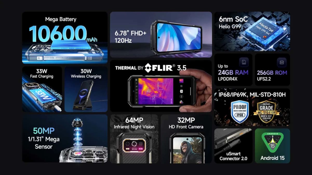 Según Ulefone, la cámara es capaz de detectar diferencias de temperatura de hasta 50 mK, aunque la propia compañía advierte que las mediciones pueden presentar desviaciones de alrededor de ±3°C, una limitación habitual en sistemas de medición térmica sin contacto. Por ello, su uso está más enfocado a detección orientativa que a medición clínica o de precisión absoluta.