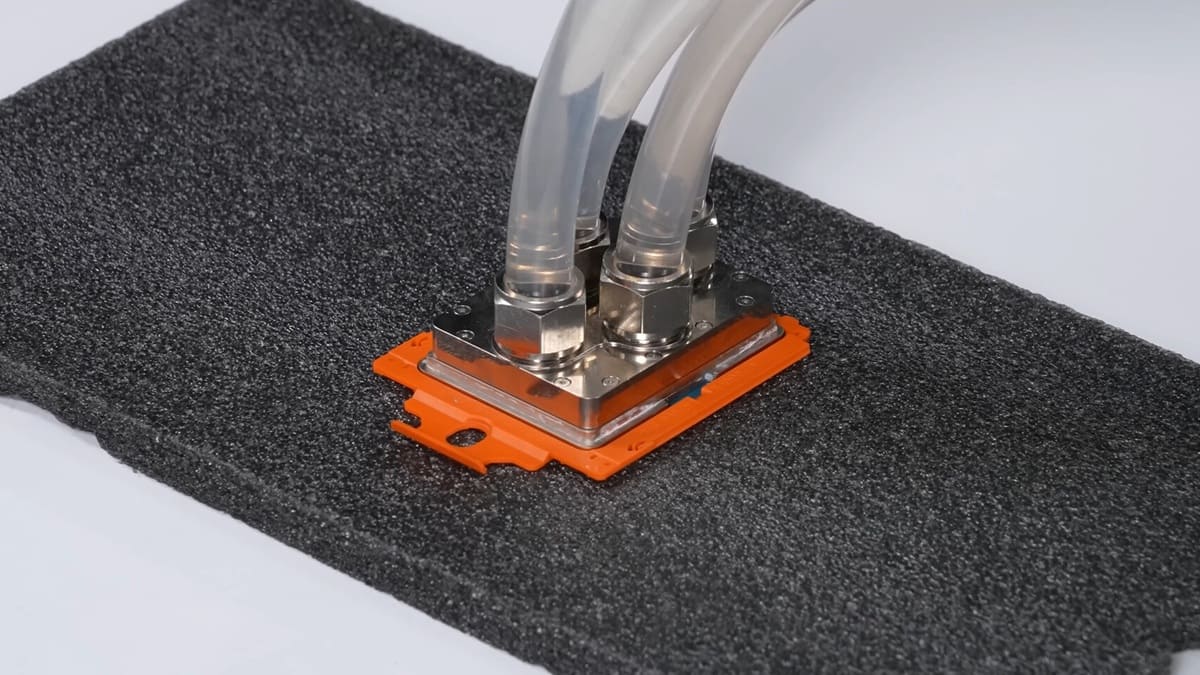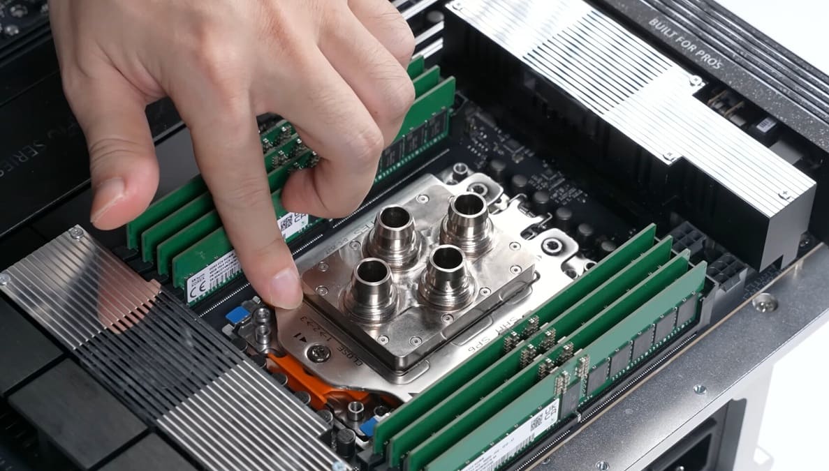 La clave del proyecto está en el IHS personalizado, mecanizado para funcionar como direct-die waterblock. El Threadripper Pro 9995WX cuenta con un IHS de 4,1 mm de grosor, lo que permitió a Geekerwan diseñar aletas internas de 2,0 mm y reservar 2,1 mm para mantener la integridad estructural, imprescindible para soportar la presión del agua.