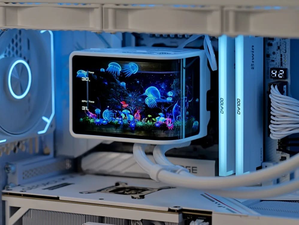 La propuesta está orientada a mostrar telemetría del sistema, gráficos personalizados o clips visuales cortos, siempre en función del soporte de software disponible. Al integrarse físicamente en el bloque de agua y no depender de soluciones externas, la pantalla mantiene una estética limpia y coherente con el diseño general del disipador.