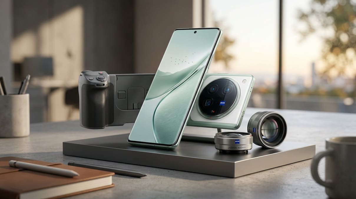Estratégicamente, la firma no se limita a mejorar los sensores, sino que introduce accesorios ópticos específicos para profesionales. La denominada Satellite Edition llegará con un kit que incluye teleconvertidores Zeiss de 200 mm y 400 mm, además de una empuñadura de cámara profesional con controles físicos. Este enfoque convierte al smartphone en una herramienta híbrida capaz de multiplicar su focal mediante accesorios externos. Esta apuesta por los teleconvertidores ópticos marca un hito en la industria, buscando captar al usuario de fotografía tradicional que demanda mayor versatilidad sin cargar con cuerpos de cámara pesados.