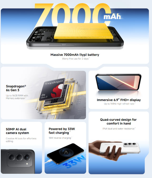 Con estas cifras, el dispositivo se posiciona como una opción competitiva dentro de la gama de entrada, destacando especialmente por su combinación de pantalla de 144 Hz, batería de 7.000 mAh y hardware equilibrado, orientado a usuarios que priorizan autonomía y fluidez.